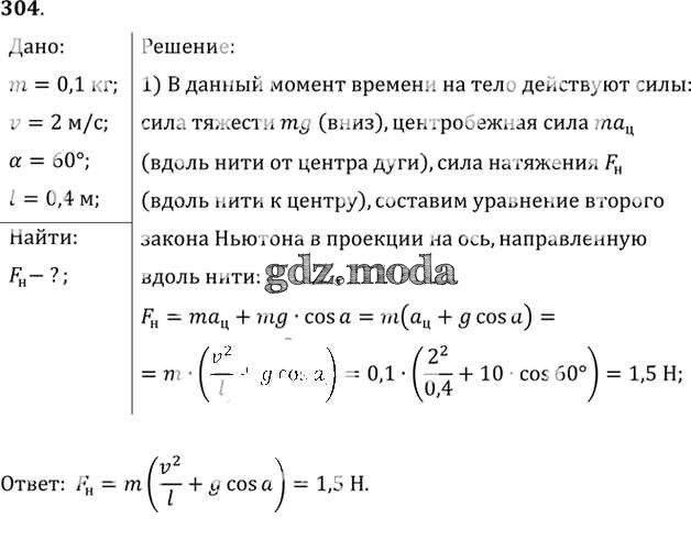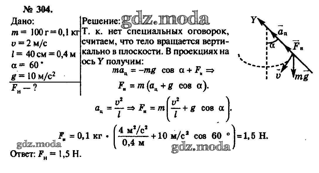 ОТВЕТ на задание № 304 Задачник по Физике 10-11 класс Рымкевич УМК