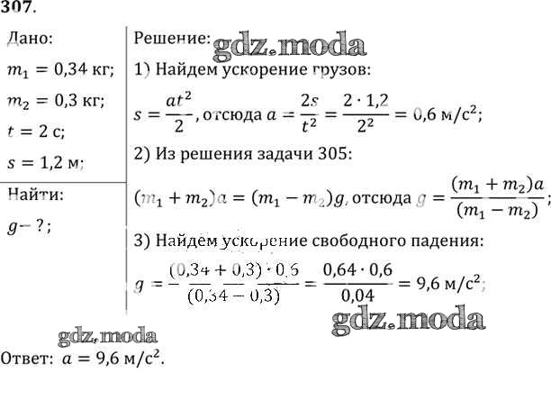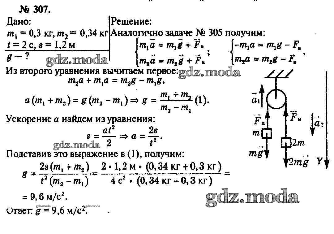 ОТВЕТ на задание № 307 Задачник по Физике 10-11 класс Рымкевич УМК