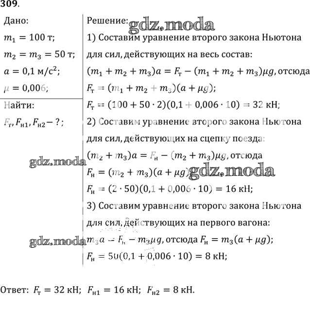 ОТВЕТ на задание № 309 Задачник по Физике 10-11 класс Рымкевич УМК