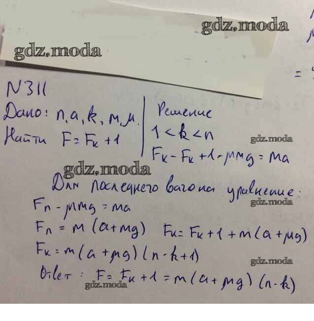ОТВЕТ на задание № 311 Задачник по Физике 10-11 класс Рымкевич УМК