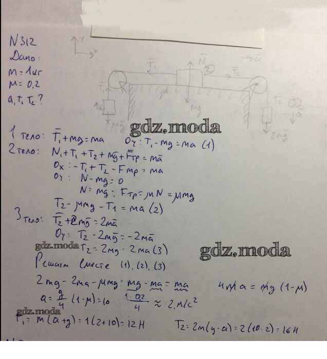 ОТВЕТ на задание № 312 Задачник по Физике 10-11 класс Рымкевич УМК