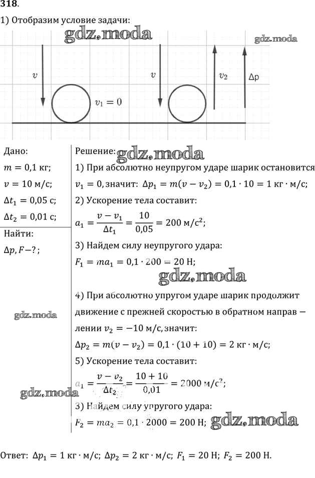 ОТВЕТ на задание № 318 Задачник по Физике 10-11 класс Рымкевич УМК