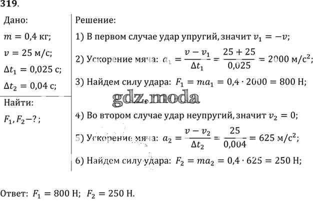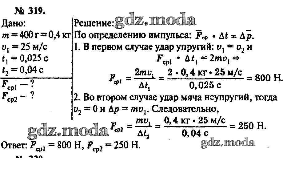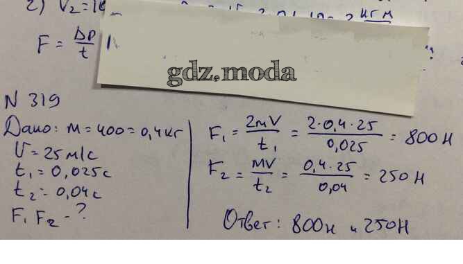 ОТВЕТ на задание № 319 Задачник по Физике 10-11 класс Рымкевич УМК