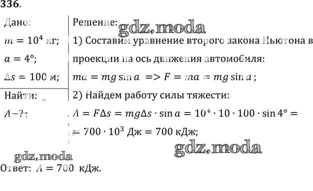 ОТВЕТ на задание № 336 Задачник по Физике 10-11 класс Рымкевич УМК