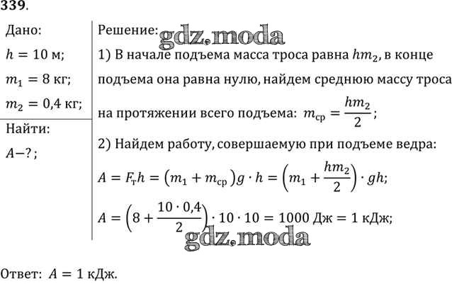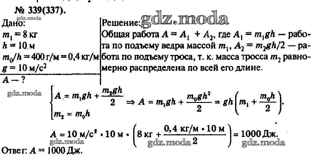 ОТВЕТ на задание № 339 Задачник по Физике 10-11 класс Рымкевич УМК