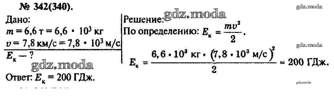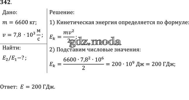 ОТВЕТ на задание № 342 Задачник по Физике 10-11 класс Рымкевич УМК