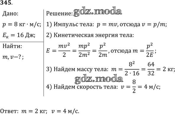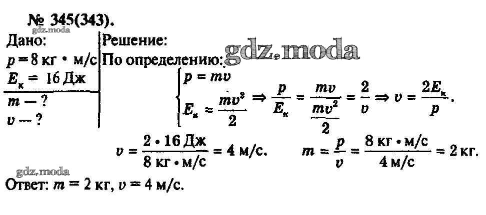 ОТВЕТ на задание № 345 Задачник по Физике 10-11 класс Рымкевич УМК