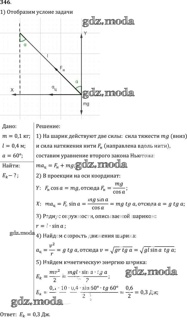 ОТВЕТ на задание № 346 Задачник по Физике 10-11 класс Рымкевич УМК