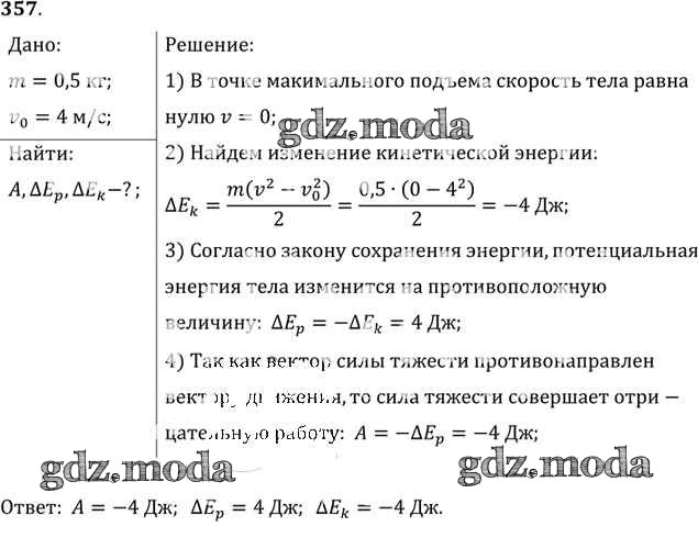 ОТВЕТ на задание № 357 Задачник по Физике 10-11 класс Рымкевич УМК
