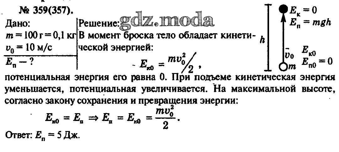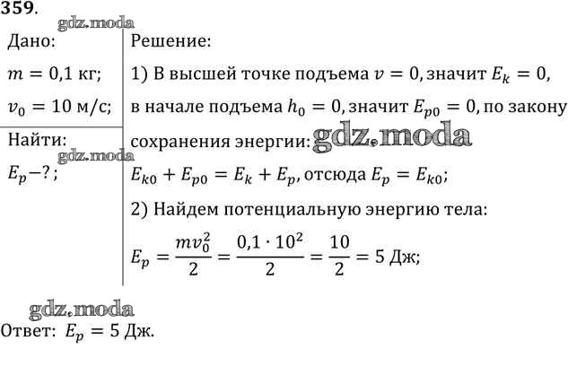 ОТВЕТ на задание № 359 Задачник по Физике 10-11 класс Рымкевич УМК