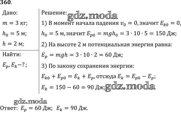 ОТВЕТ на задание № 360 Задачник по Физике 10-11 класс Рымкевич УМК