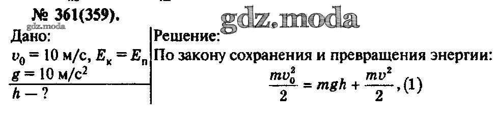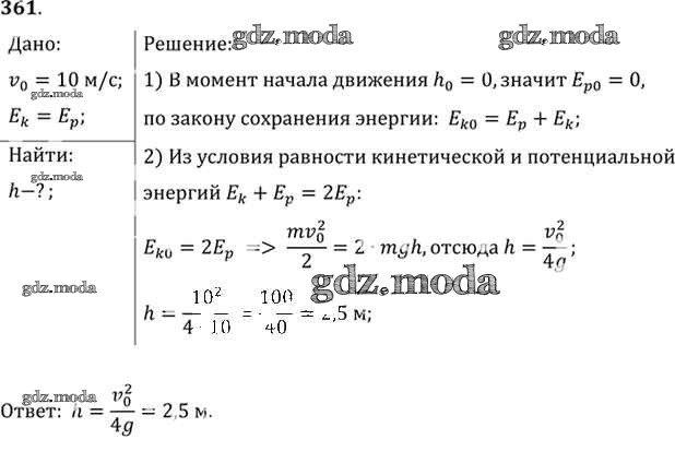 ОТВЕТ на задание № 361 Задачник по Физике 10-11 класс Рымкевич УМК