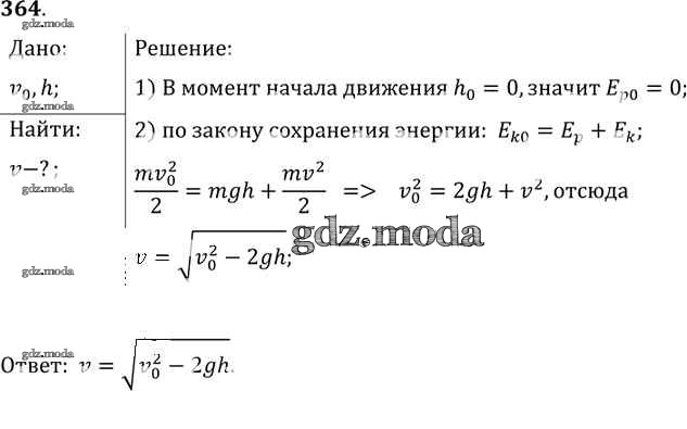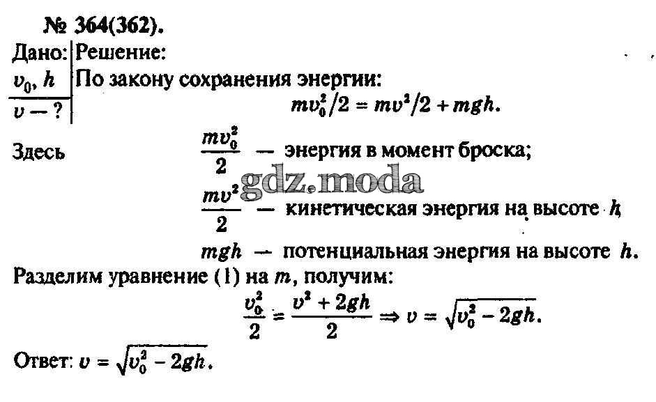 ОТВЕТ на задание № 364 Задачник по Физике 10-11 класс Рымкевич УМК
