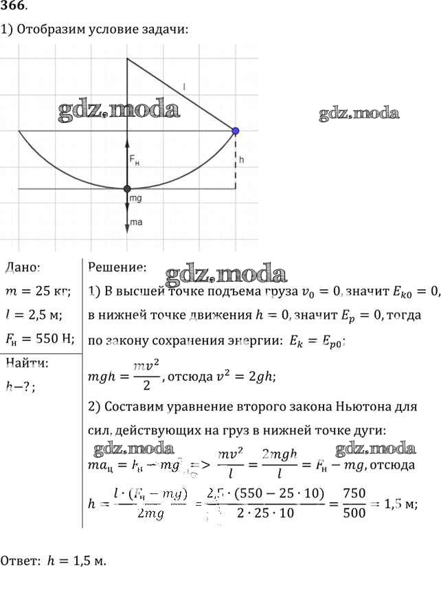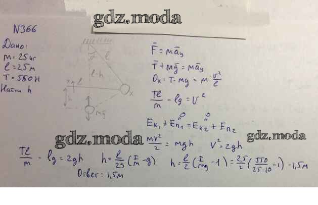 ОТВЕТ на задание № 366 Задачник по Физике 10-11 класс Рымкевич УМК
