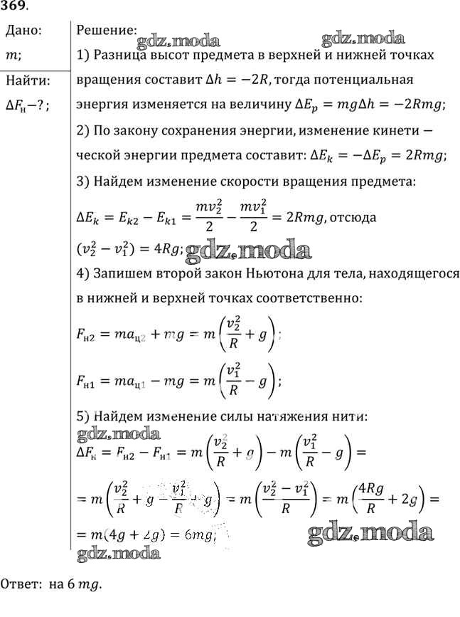 ОТВЕТ на задание № 369 Задачник по Физике 10-11 класс Рымкевич УМК