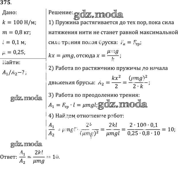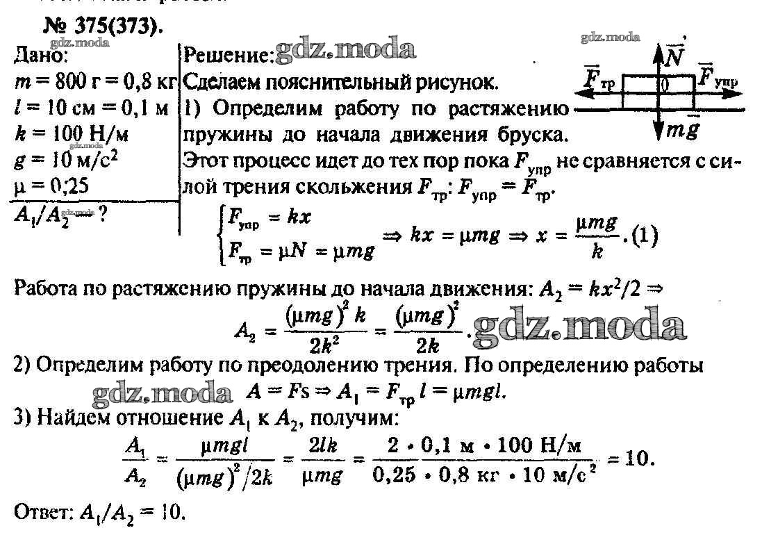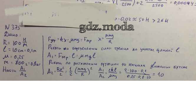 ОТВЕТ на задание № 375 Задачник по Физике 10-11 класс Рымкевич УМК
