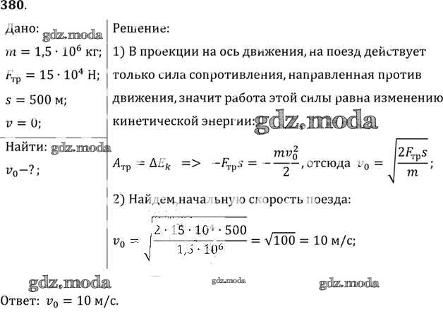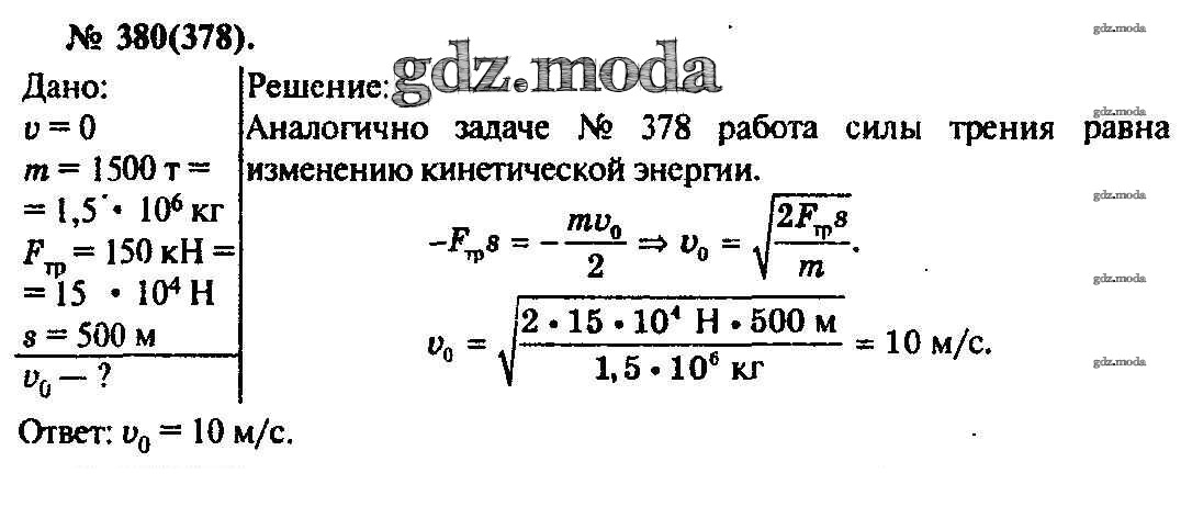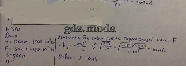 ОТВЕТ на задание № 380 Задачник по Физике 10-11 класс Рымкевич УМК