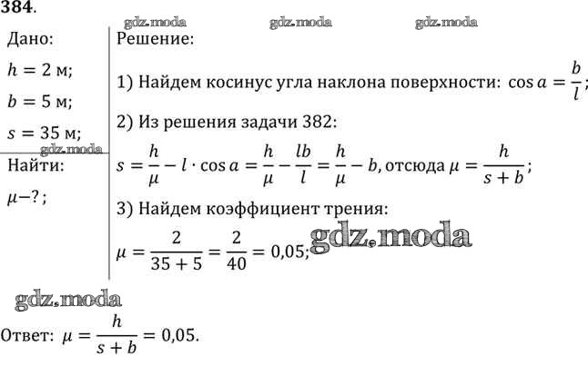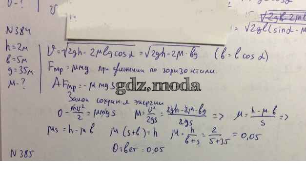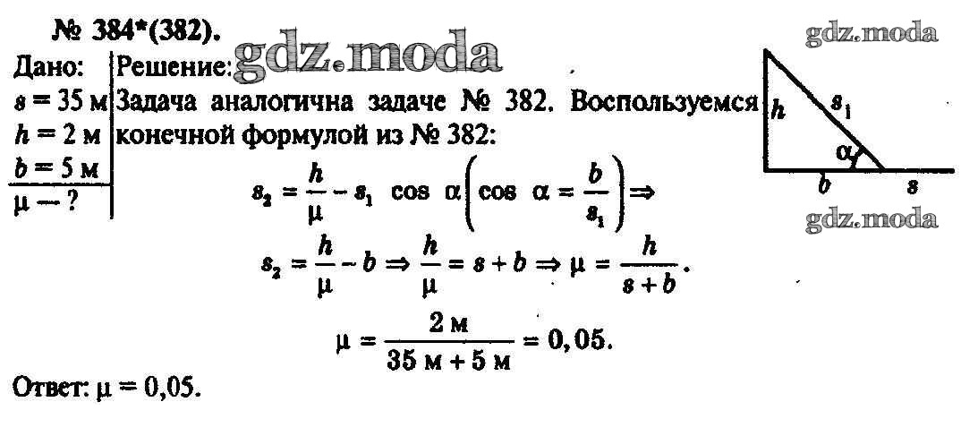 ОТВЕТ на задание № 384 Задачник по Физике 10-11 класс Рымкевич УМК