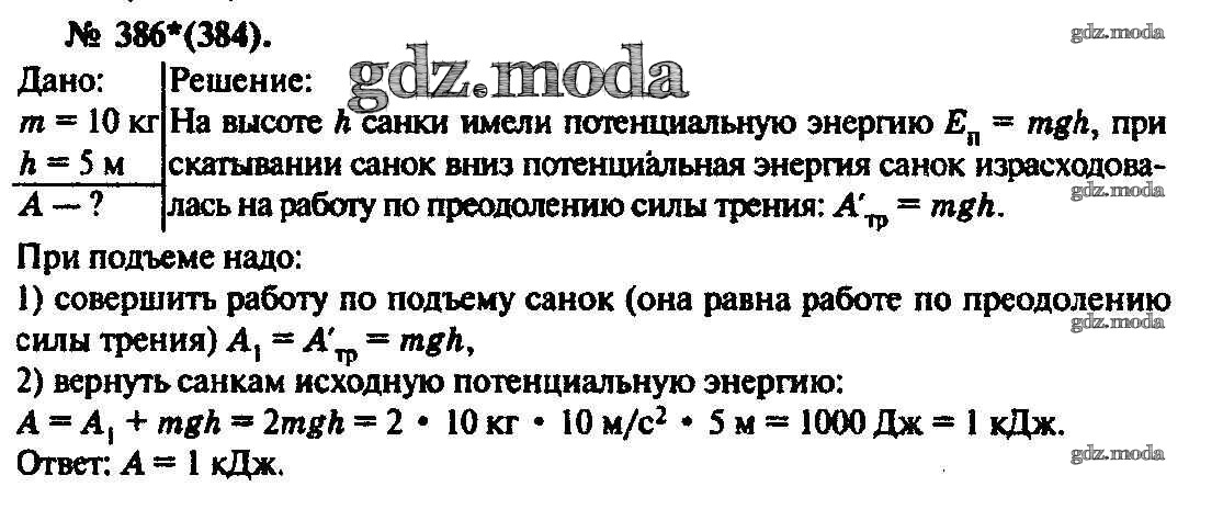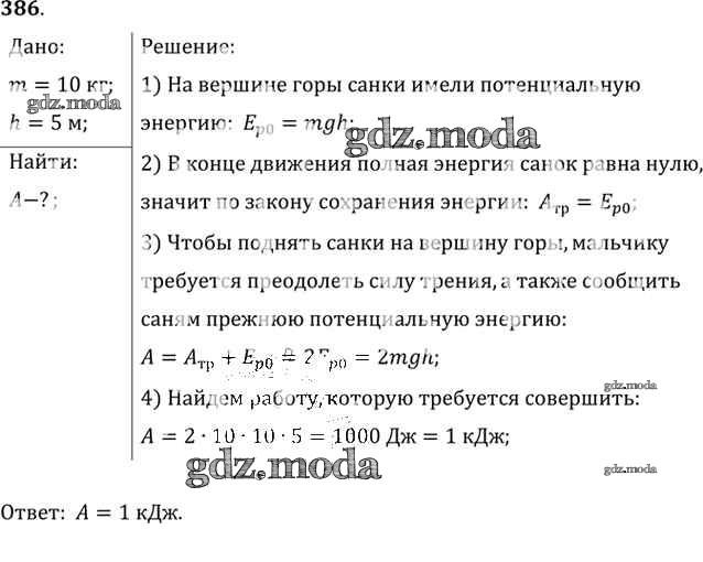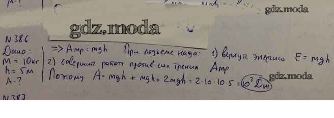 ОТВЕТ на задание № 386 Задачник по Физике 10-11 класс Рымкевич УМК
