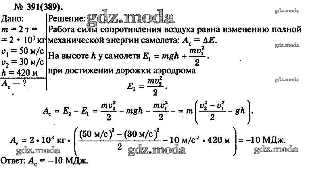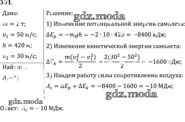ОТВЕТ на задание № 391 Задачник по Физике 10-11 класс Рымкевич УМК