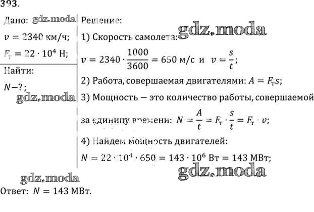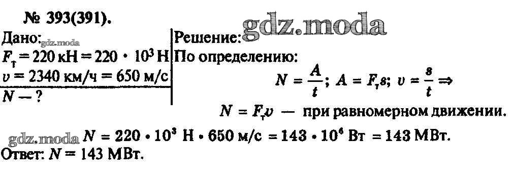 ОТВЕТ на задание № 393 Задачник по Физике 10-11 класс Рымкевич УМК