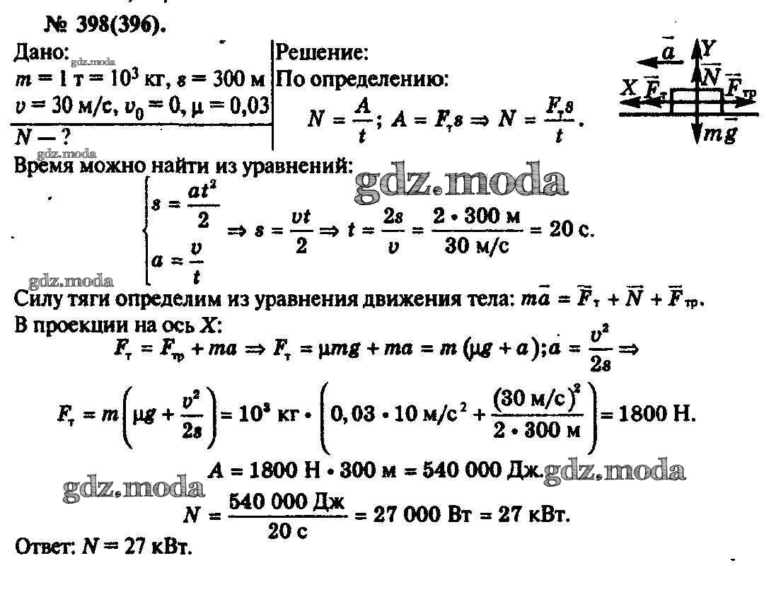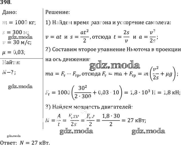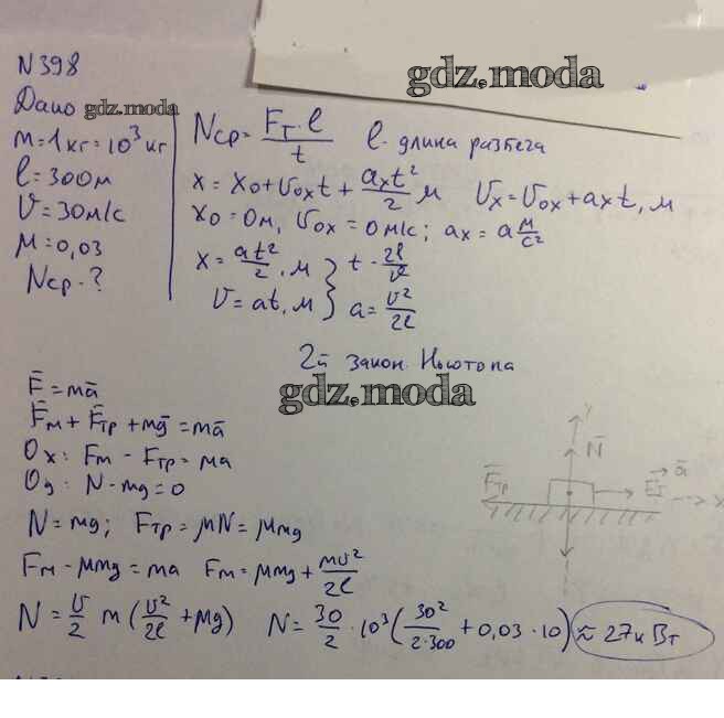 ОТВЕТ на задание № 398 Задачник по Физике 10-11 класс Рымкевич УМК