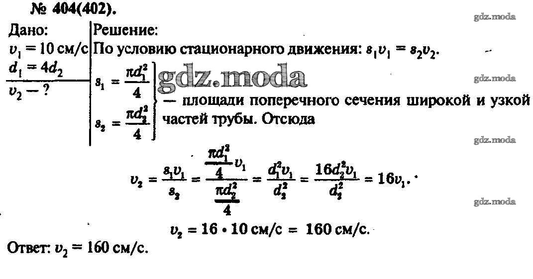 ОТВЕТ на задание № 404 Задачник по Физике 10-11 класс Рымкевич УМК