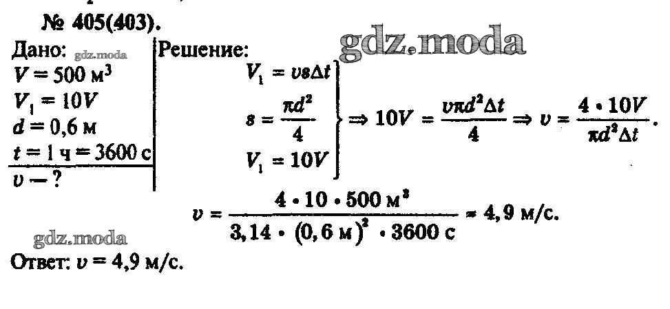 ОТВЕТ на задание № 405 Задачник по Физике 10-11 класс Рымкевич УМК