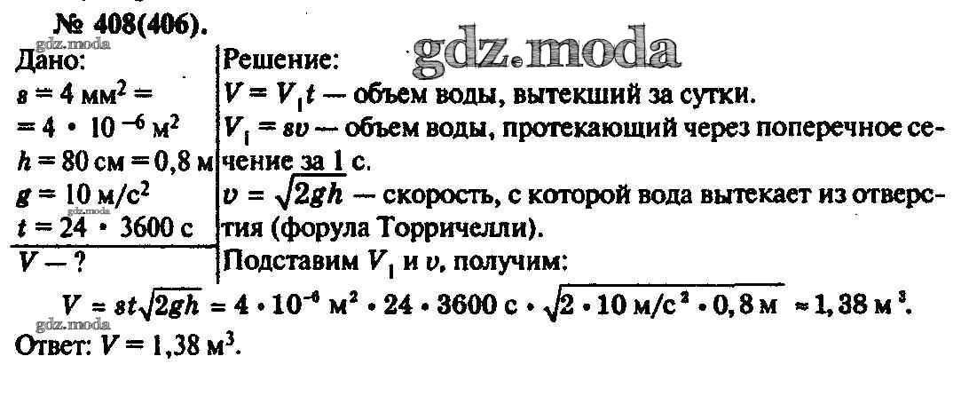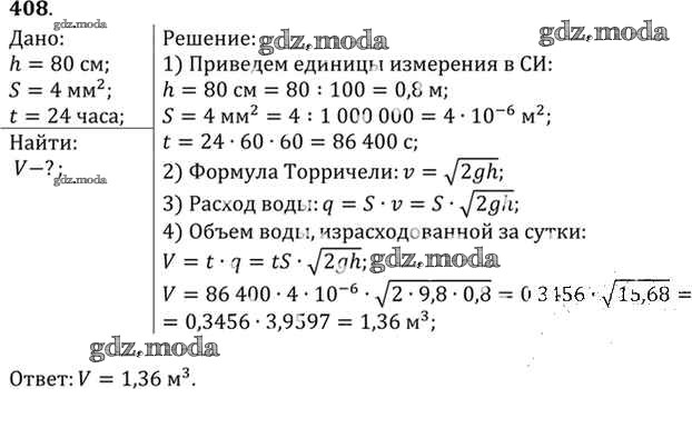 ОТВЕТ на задание № 408 Задачник по Физике 10-11 класс Рымкевич УМК