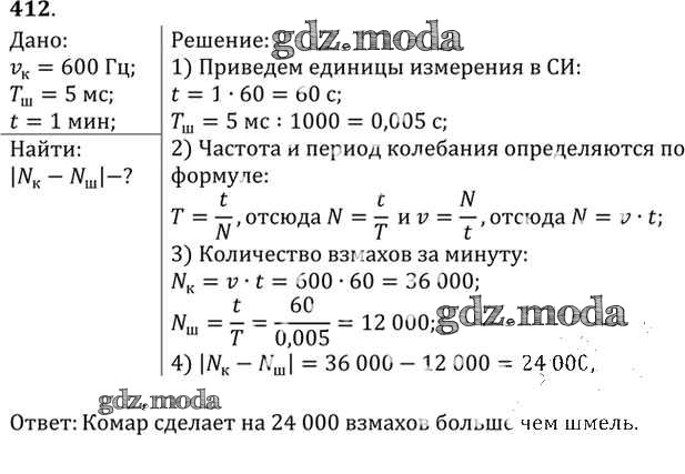 ОТВЕТ на задание № 412 Задачник по Физике 10-11 класс Рымкевич УМК