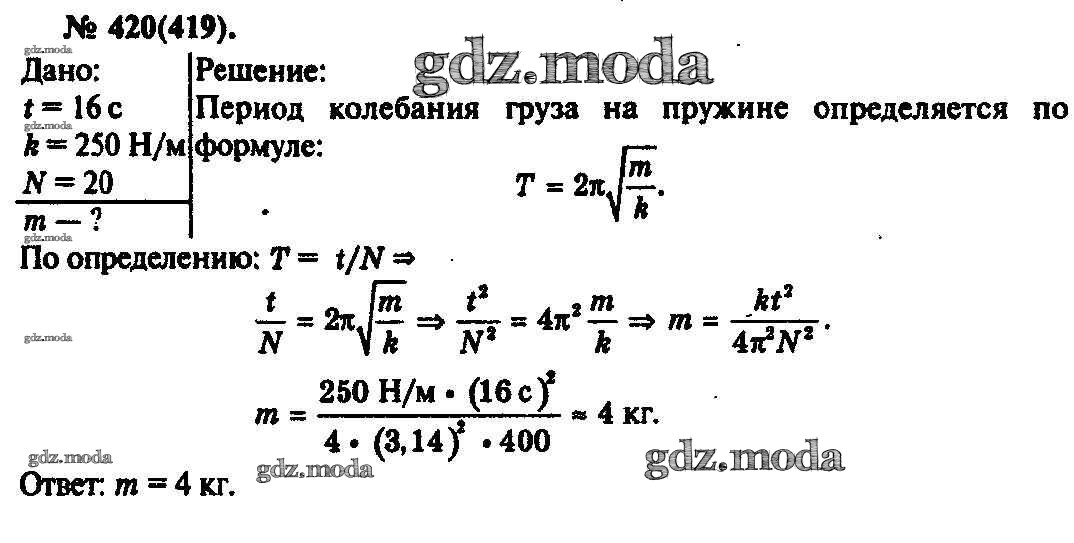 ОТВЕТ на задание № 420 Задачник по Физике 10-11 класс Рымкевич УМК