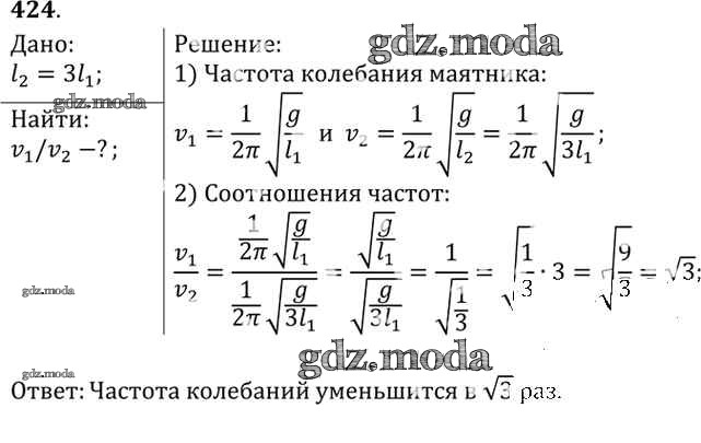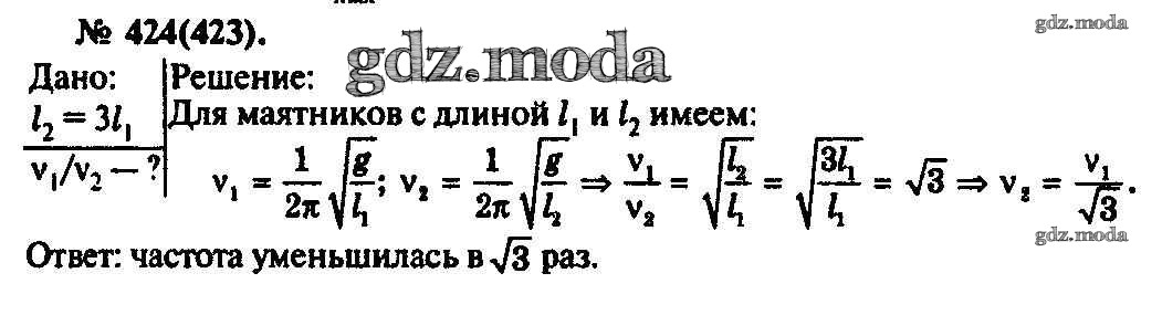 ОТВЕТ на задание № 424 Задачник по Физике 10-11 класс Рымкевич УМК