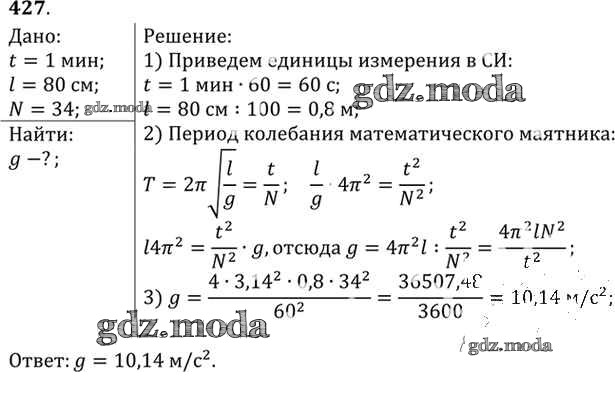 ОТВЕТ на задание № 427 Задачник по Физике 10-11 класс Рымкевич УМК