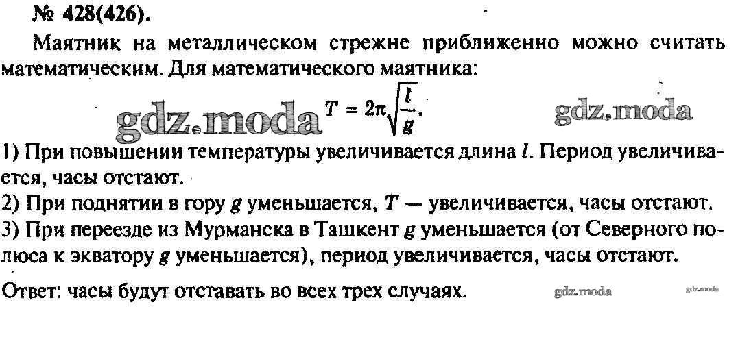 ОТВЕТ на задание № 428 Задачник по Физике 10-11 класс Рымкевич УМК