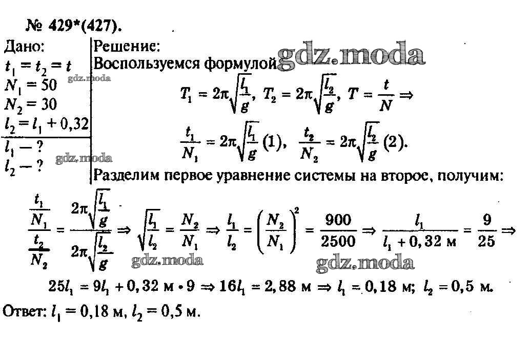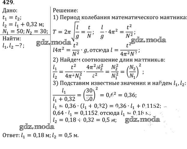 ОТВЕТ на задание № 429 Задачник по Физике 10-11 класс Рымкевич УМК