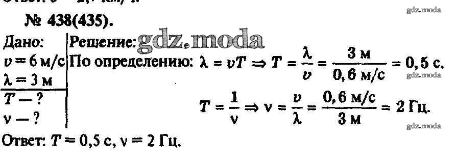 ОТВЕТ на задание № 438 Задачник по Физике 10-11 класс Рымкевич УМК