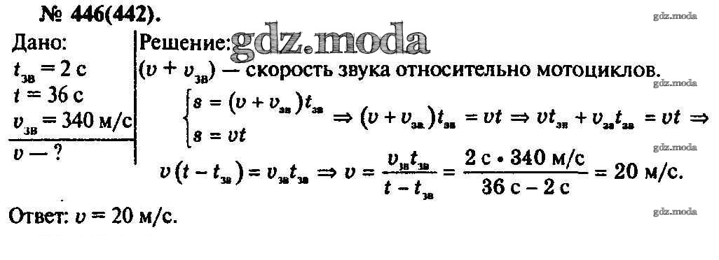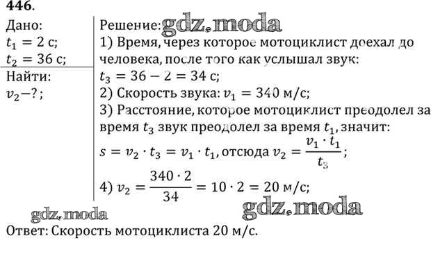 ОТВЕТ на задание № 446 Задачник по Физике 10-11 класс Рымкевич УМК