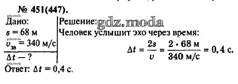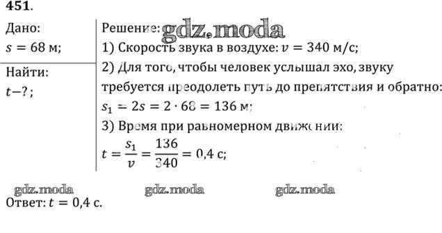 ОТВЕТ на задание № 451 Задачник по Физике 10-11 класс Рымкевич УМК