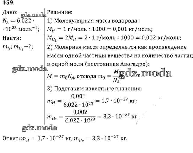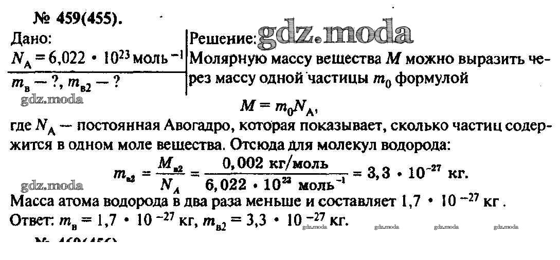 ОТВЕТ на задание № 459 Задачник по Физике 10-11 класс Рымкевич УМК