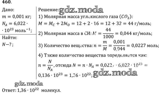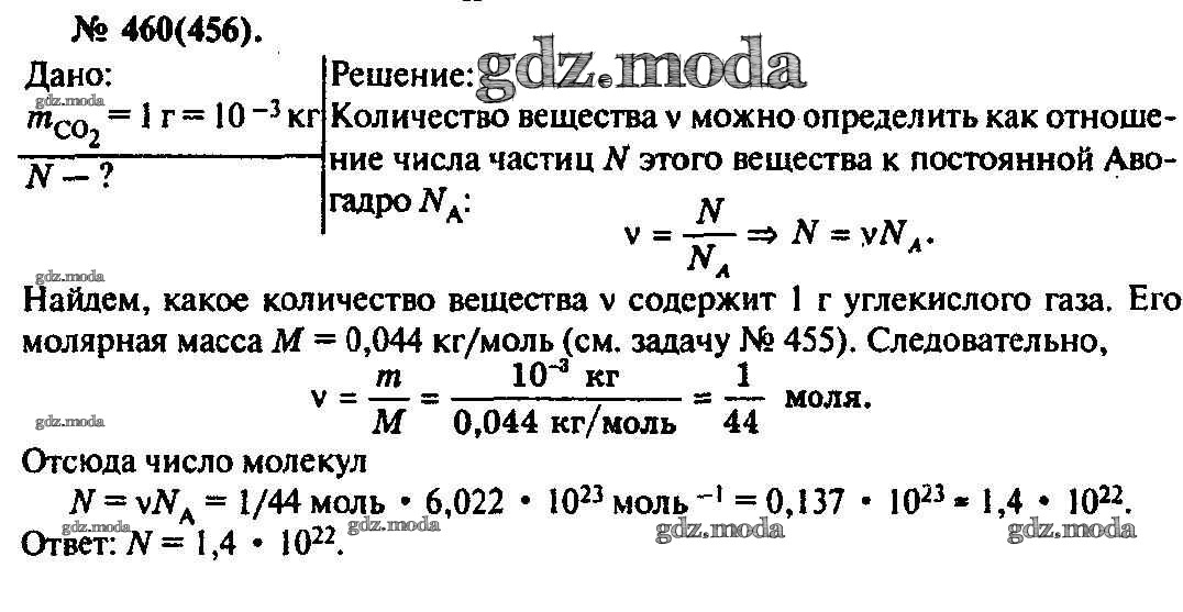 ОТВЕТ на задание № 460 Задачник по Физике 10-11 класс Рымкевич УМК