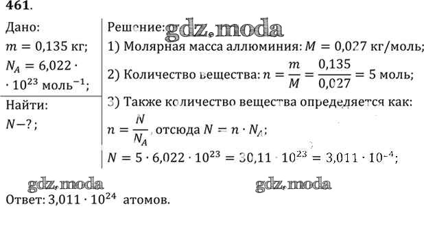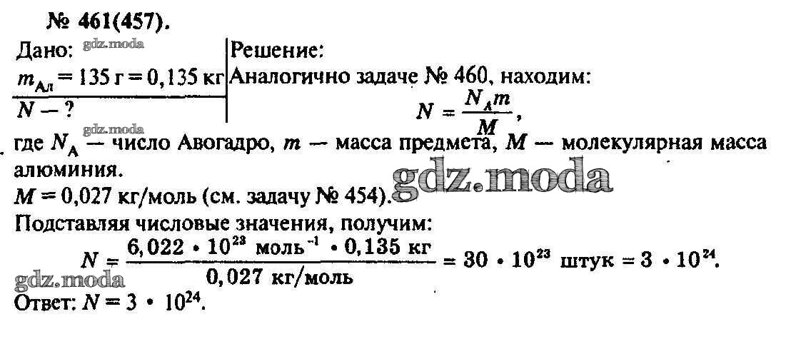 ОТВЕТ на задание № 461 Задачник по Физике 10-11 класс Рымкевич УМК