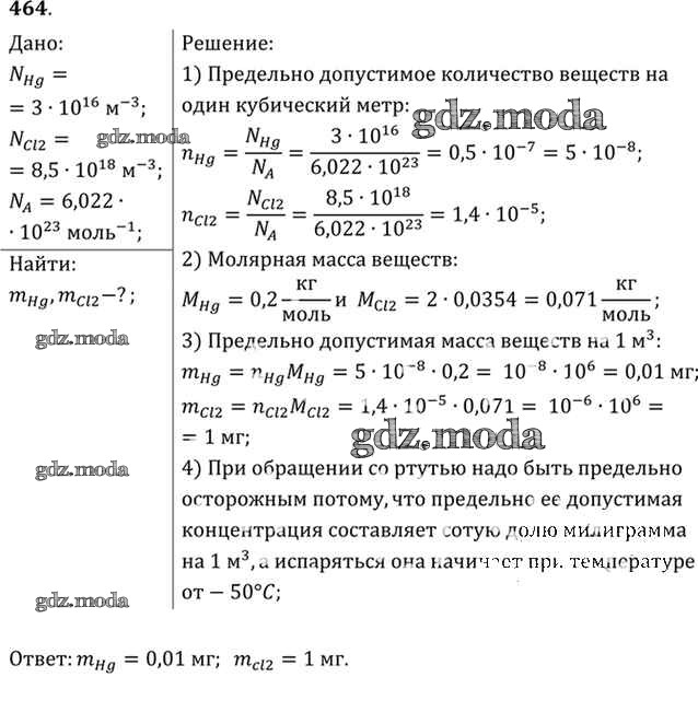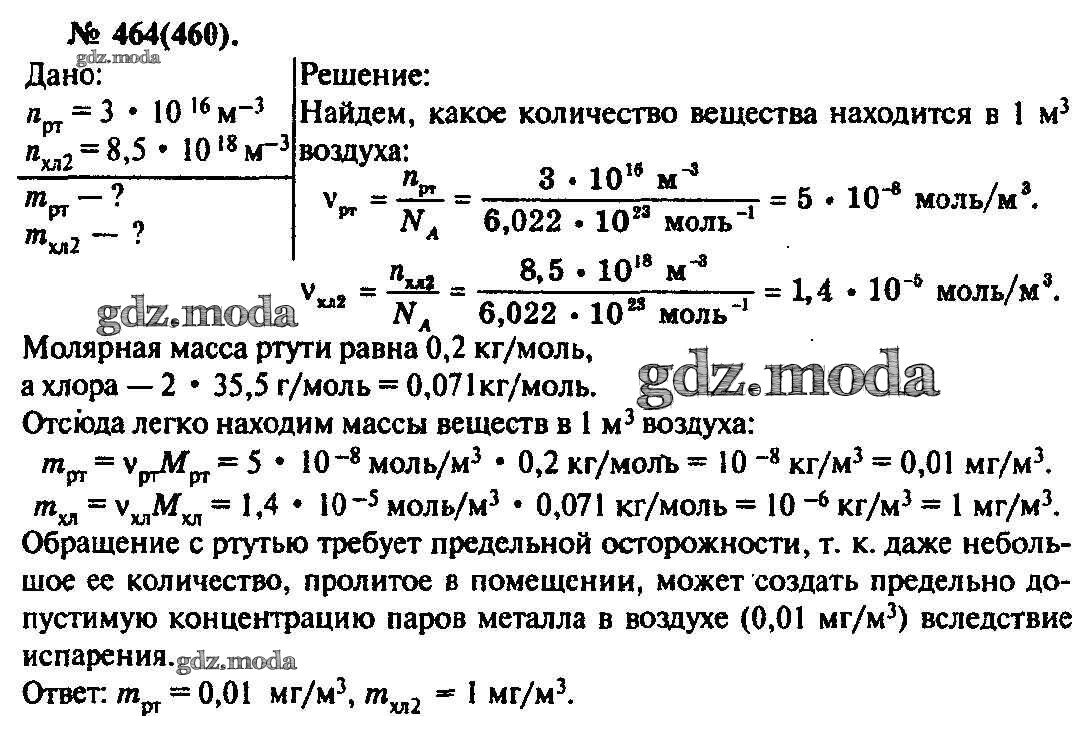 ОТВЕТ на задание № 464 Задачник по Физике 10-11 класс Рымкевич УМК