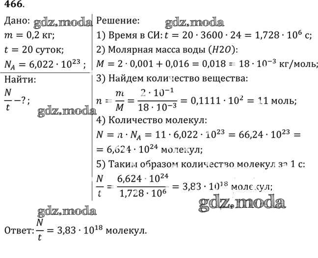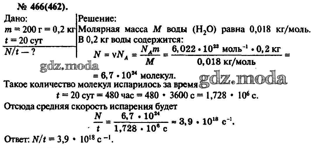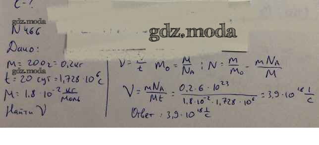 ОТВЕТ на задание № 466 Задачник по Физике 10-11 класс Рымкевич УМК