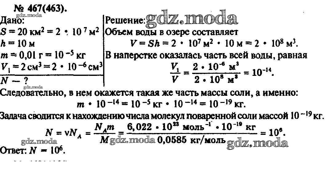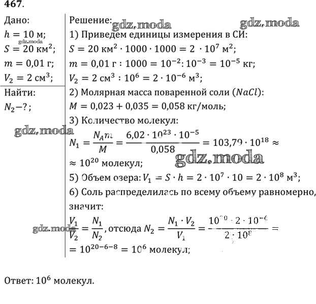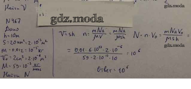 ОТВЕТ на задание № 467 Задачник по Физике 10-11 класс Рымкевич УМК