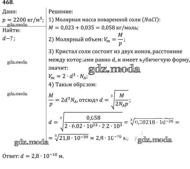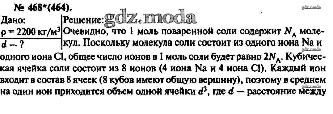 ОТВЕТ на задание № 468 Задачник по Физике 10-11 класс Рымкевич УМК