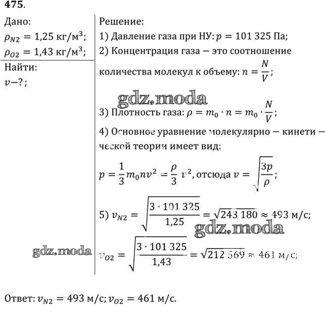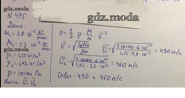 ОТВЕТ на задание № 475 Задачник по Физике 10-11 класс Рымкевич УМК