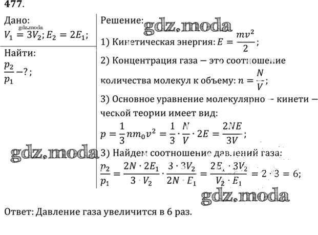 ОТВЕТ на задание № 477 Задачник по Физике 10-11 класс Рымкевич УМК