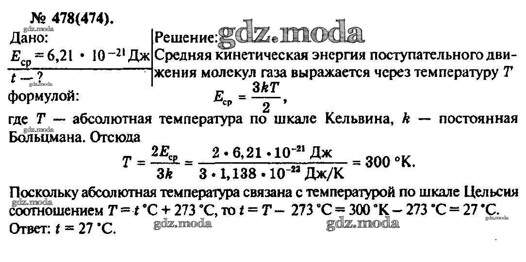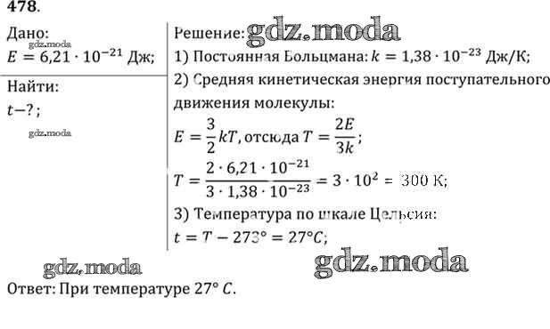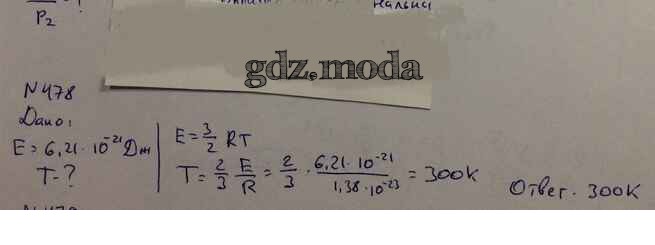 ОТВЕТ на задание № 478 Задачник по Физике 10-11 класс Рымкевич УМК
