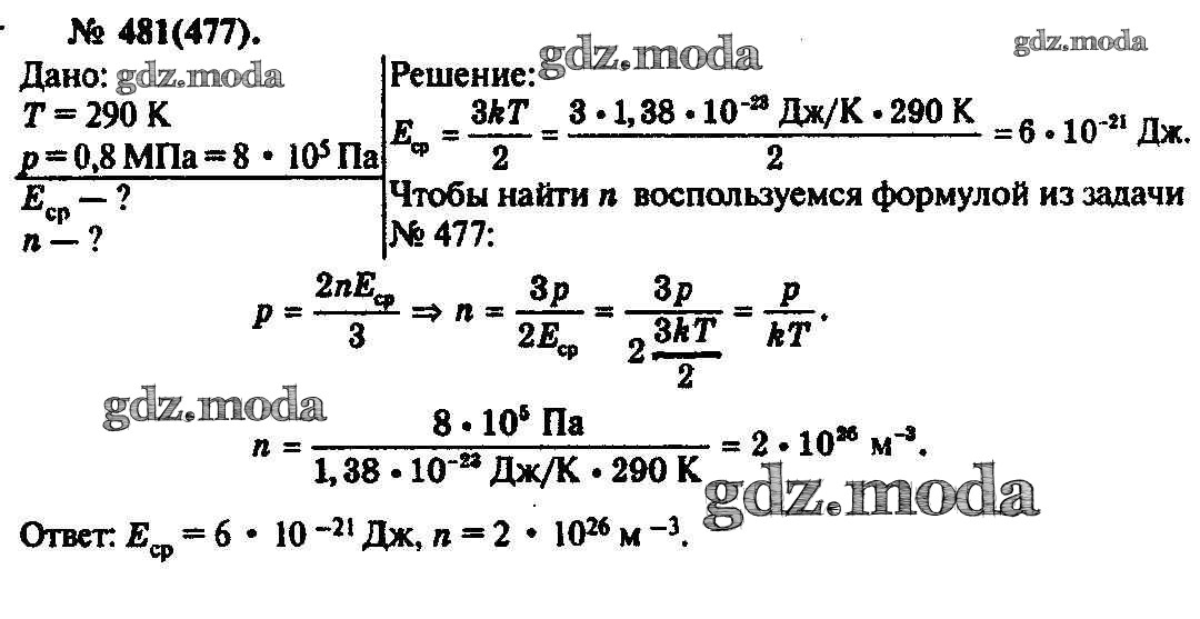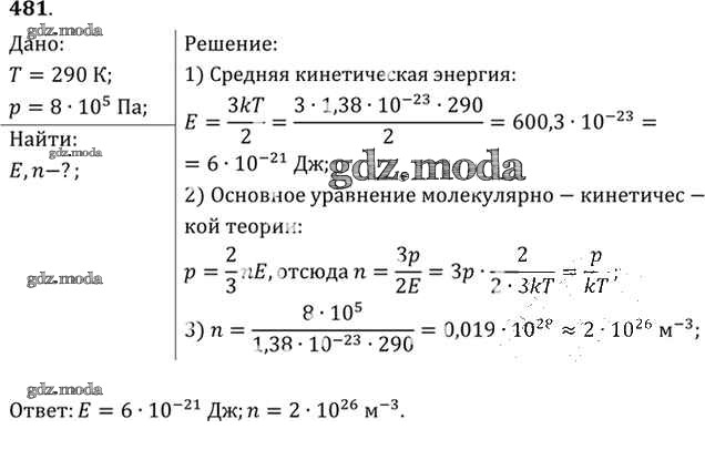 ОТВЕТ на задание № 481 Задачник по Физике 10-11 класс Рымкевич УМК