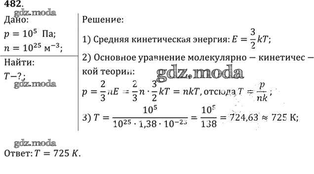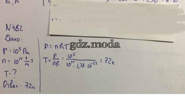 ОТВЕТ на задание № 482 Задачник по Физике 10-11 класс Рымкевич УМК